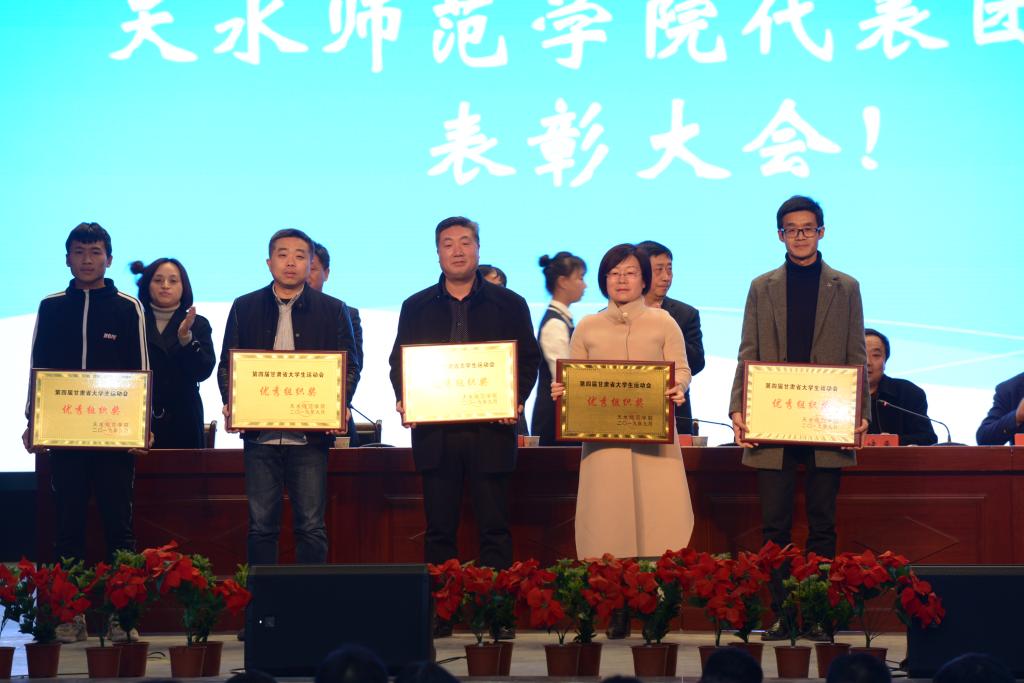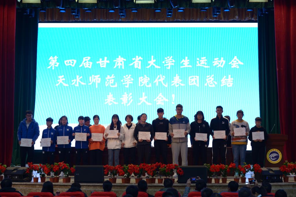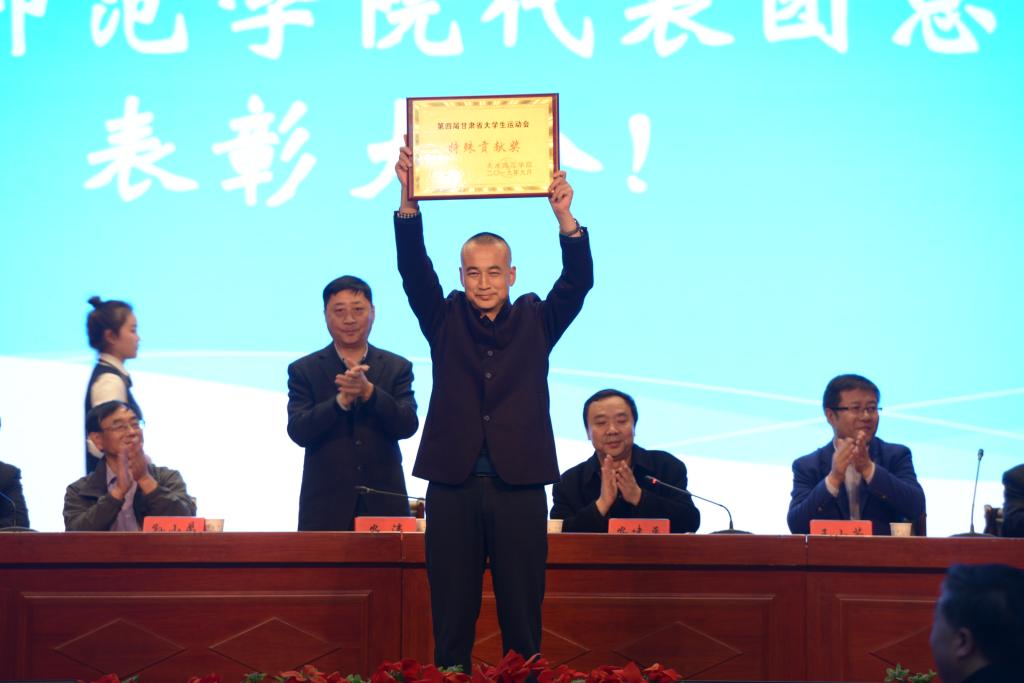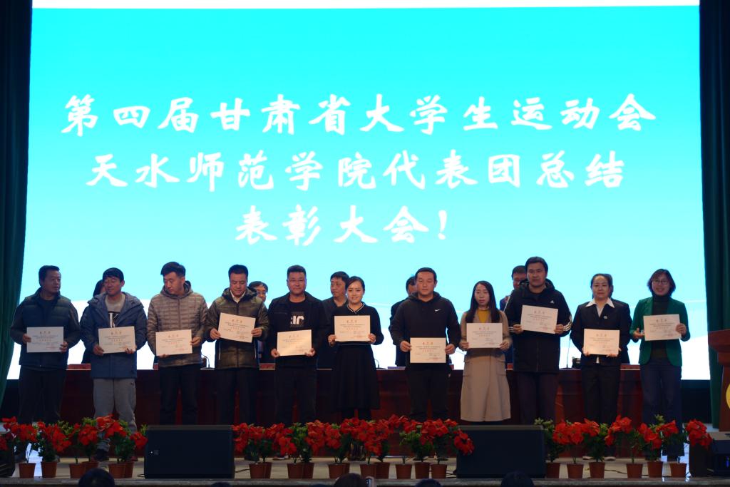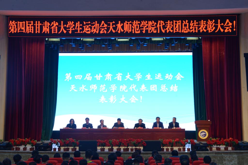 10月14日下午,第四届甘肃省老员工运动会太阳成集团tyc151代表团总结表彰大会在公司文化大礼堂召开。公司党委副书记、董事长安涛出席会议并为受到表彰的单位和个人进行颁奖。校工会、员工处、团委、二级公司相关负责人,太阳成集团tyc151全体师生和代表团全体运动员、教练员、工作人员共计800余人参加大会。大会由副董事长、校体委主任安建平主持。