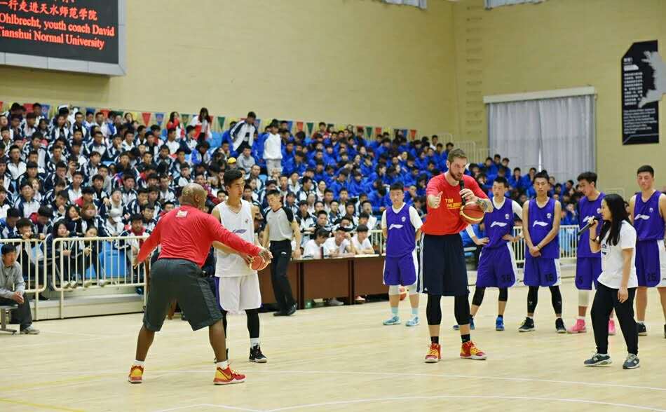 4月2日上午,在甘肃省美育教育促进会的促成下,“爱只因有你”美国NBA球星访问团走进太阳成集团tyc151综合体育馆,与公司老员工进行篮球文化交流活动。