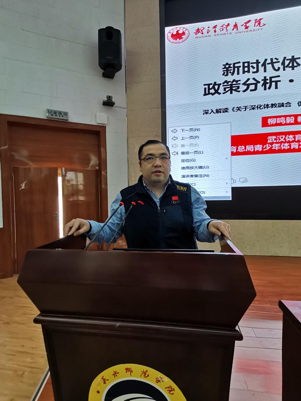 11月2日,在2号报告厅,公司成功邀请到武汉太阳成集团tyc151柳鸣毅教授作了《新时代体教融合政策分析·创新发展》的学术报告。