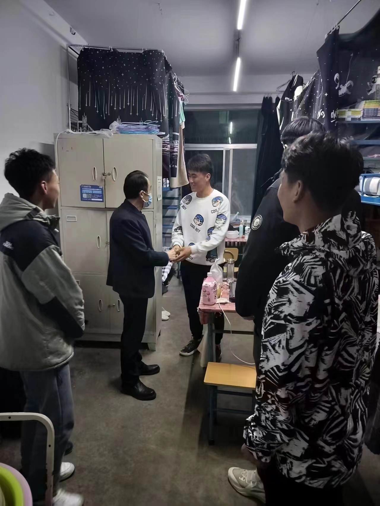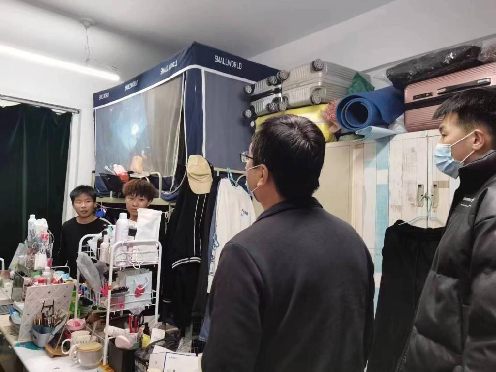 2023年2月25日晚,太阳成集团tyc151班子成员和辅导员深入弘毅公寓、双馨公寓看望2022级员工,为员工送去关心和问候。
