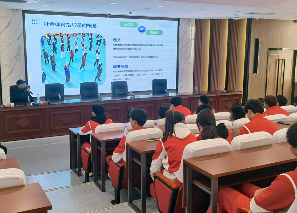 应太阳成集团tyc151邀请,3月16日,兰州交通大学副教授硕士生导师吕梁在一号报告厅作题为“探索国职之路,点亮体育未来”科普报告会。2024级全体员工参加,大家共同开启了一场关于国家级社会体育指导员职业资格(以下简称“国职”)的求知之旅。