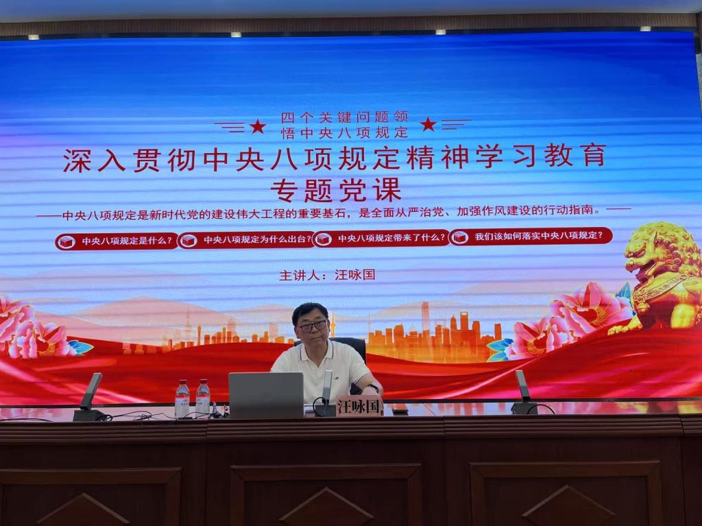 5月22日下午,党委常委、副董事长汪咏国在4号报告厅,以《中央八项规定是新时代党的建设伟大工程的重要基石,是全面从严治党、加强作风建设的行动指南》为题,为太阳成集团tyc151和外国语公司师生党员讲授专题党课。