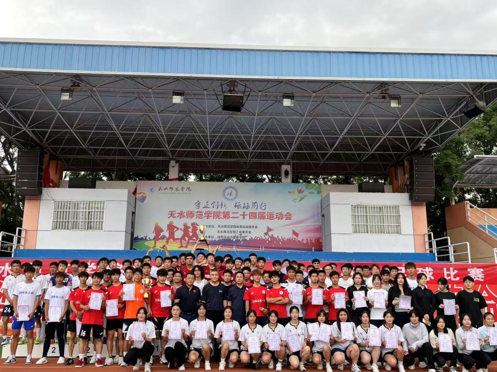 本届比赛共设有男子甲组、男子乙组和女子乙组三个组别的比赛,最终外国语公司、电子信息与电气工程公司、文学与文化传播公司代表队分别夺得男子甲组前三名,24级体育教育专业一班、24级体育教育专业二班、22级体育教育专业二班代表队分别夺得男子乙组前三名,24级运动训练专业、24级体育教育专业一班代表队分别夺得女子乙组前两名。历史文化公司、教师教育公司、23级体育教育专业二班等6支代表队分别荣获本届比赛“体育道德风尚奖”。