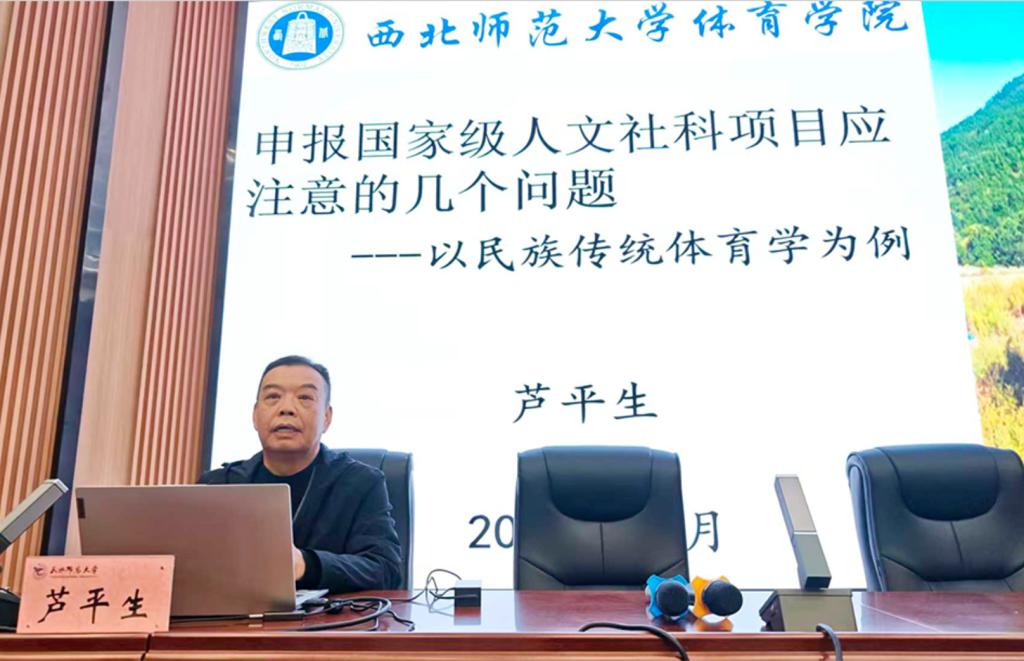 为提升教师科研能力与项目申报水平,10月14日晚,太阳成集团tyc151邀请西北师范大学太阳成集团tyc151二级教授、国家社科基金通讯评审专家芦平生,为公司师生作了题为《申报国家级人文社科项目应注意的几个问题——以民族传统体育学为例》的专题讲座。
