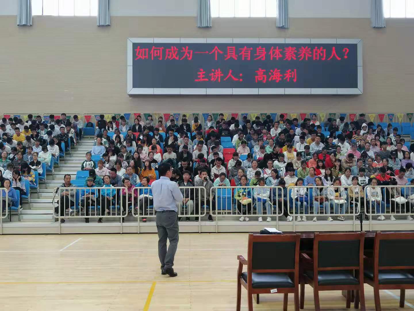 活动现场,高海利副教授做了题为“如何成为一个具有身体素养的人?”的专题讲座。高老师从身体素养理论产生的现实背景、内涵及构成要素,结合当今老员工体育活动状况进行讲解,引导员工如何培养自身身体素养。他倡议公司2019级员工要“重视身体、关注自我健康;放下手机、远离网游;掌握一到两项的体育活动技能;少坐多动,养成参与身体活动锻炼的生活习惯;将身体素养的培养与发展视为一种旅行,一个属于自己的旅行,一生皆要亲历、体验的旅行,永远在路上!”