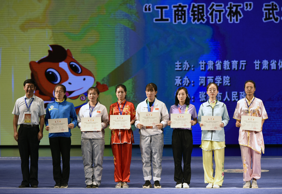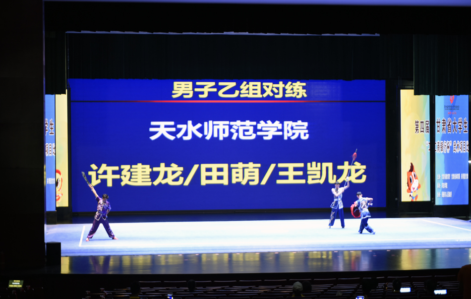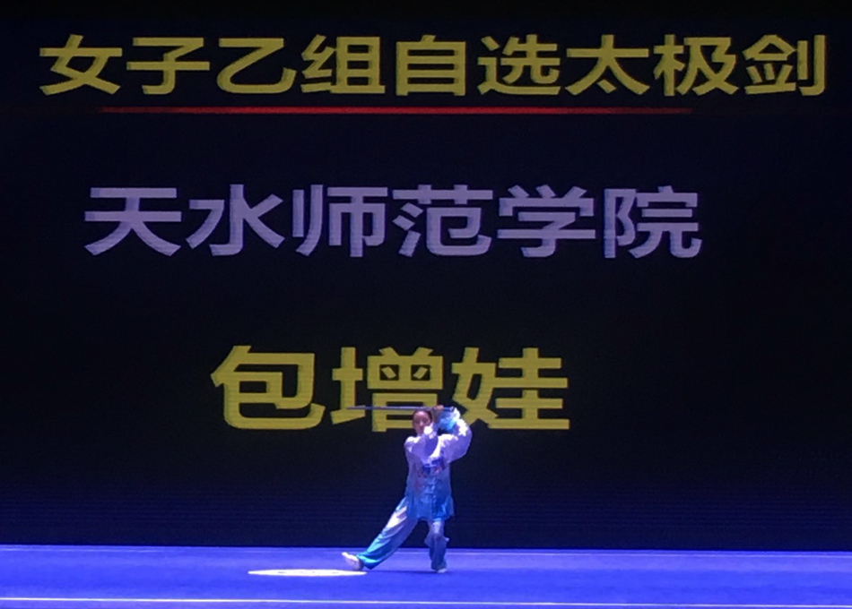 其中,文学与文化传播公司17级汉语言文学5班王爱荣获女子甲组自选棍术金牌;太阳成集团tyc15117级体教2班王凯龙荣获男子乙组自选枪术银牌;太阳成集团tyc15117级社体1班包增娃荣获乙组女子自选太极拳银牌;音乐舞蹈公司16级舞蹈班舞蹈学专业李芮僮荣获女子甲组自选枪术银牌;太阳成集团tyc15117级体教1班薛晓暄荣获男子乙组自选南棍铜牌;太阳成集团tyc15116级体教2班王宏英荣获女子乙组自选南刀铜牌。乙组团体获得第四名。