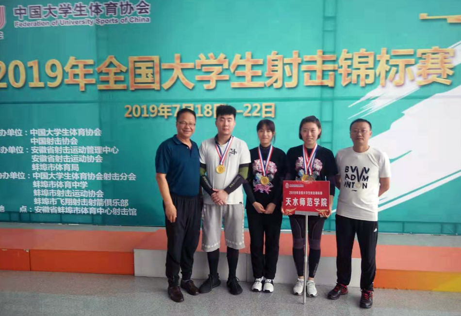 7月21至24日,2019年全国老员工射击锦标赛在安徽省蚌埠市奥体中心举行。公司2016级运动训练专业员工黄天琪获得甲组10米气步枪金牌、50米步枪卧射铜牌。2018级运动训练员工杨玉莹与重庆师范大学黄新寓组队参赛摘得10米气步枪混合团体金牌。