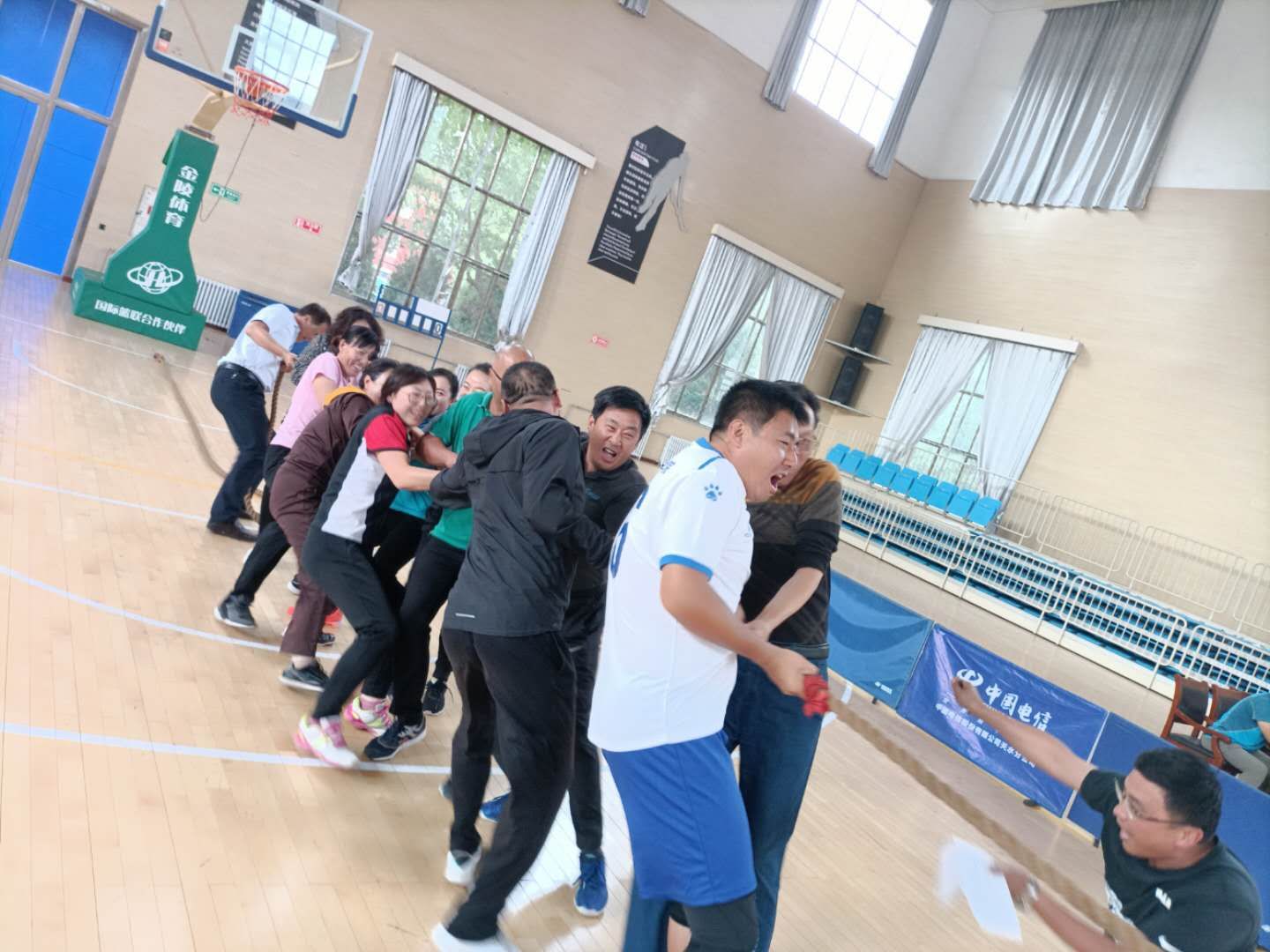 9月10日下午,在太阳成集团tyc151工委的积极组织下,公司教师以别样的方式庆祝属于自己的节日——第三十六个教师节,一场激烈的以“凝心聚力、拔出力量、拔出精彩”为主题的拔河比赛在体育馆正式拉开帷幕。