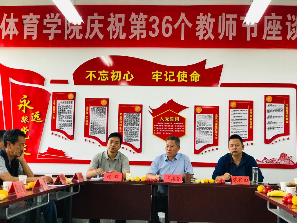 首先,公司党总支副书记吴建全代表公司新一届班子和全体师生向在座的老教师、老职工致以节日的祝福和美好的祝愿,并且简要介绍了召开本次座谈会的初衷和目的,聆听老一辈体育人的奋斗史,激发青年一代体育人的斗志。