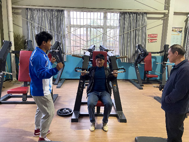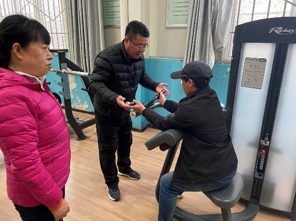 在残疾人体育运动与康复实践授课中:魏玉琴老师携7名员工围绕创编的《残疾人拉力带健身操舞》和《残疾人全身健身操舞》展开教学,重点通过借助拉力带的辅助作用,使残疾人的肩部、颈部、腰部起到良好的运动康复训练;而全身健身操舞则由下肢的34步组成,这对残疾人的全身活动起到了重要作用。陈玮老师选用自主创编的《轮椅健身操舞》,隶属徒手类健身项目,使残疾人在音乐伴奏下,融入多种时尚舞蹈元素为一体的有氧运动,重点对残疾人头、颈、肩、胸及腰等5部位的运动康复练习起到促进作用。段文义教授则通过公司健身房内残疾人体育运动与康复训练的专业性器械设备,进行悉心的指导和动作演示,这对满足残疾人业余时间内的体育健身、机能恢复、伤残康复训练提供指导与帮助。