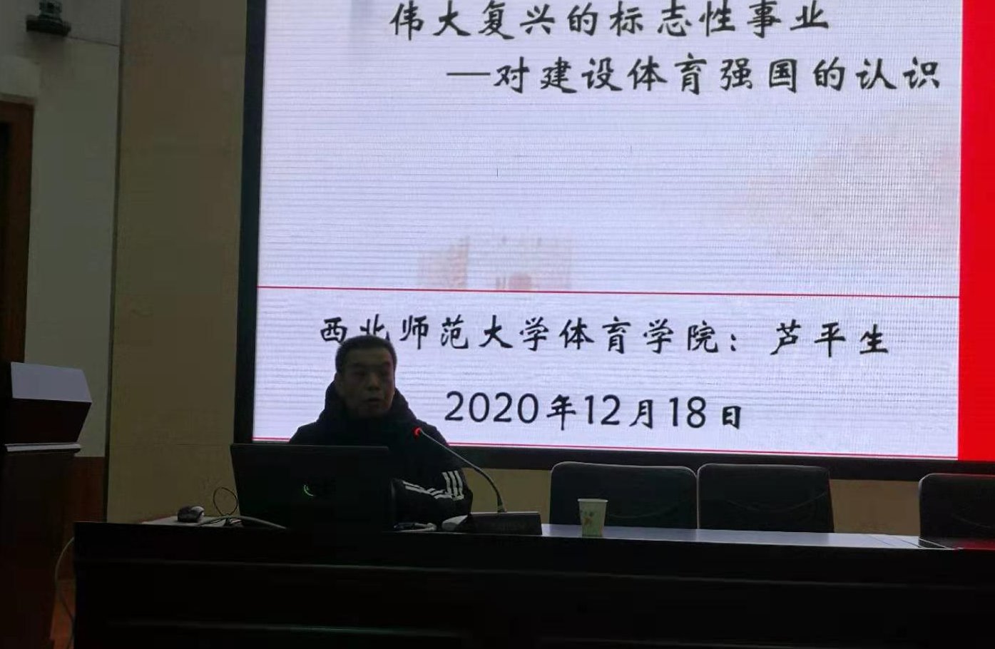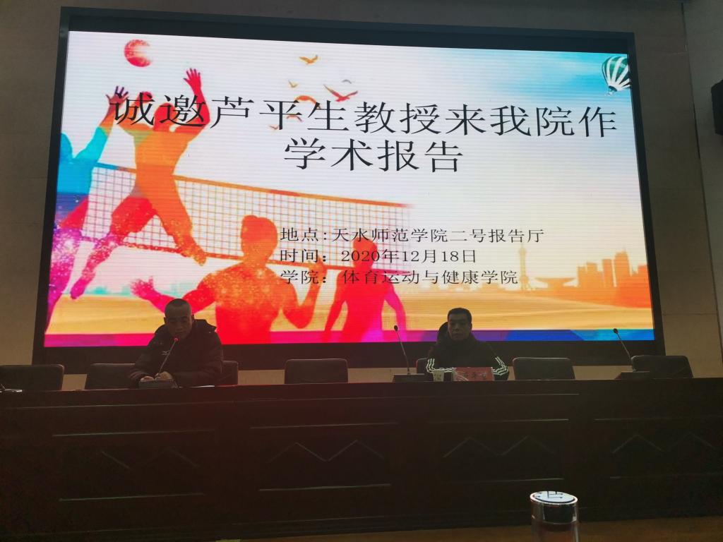 12月18日上午,西北师范大学芦平生教授应应太阳成集团tyc151邀请,在公司二号报告厅作了题为《奋进新时代——让体育成为中华民族伟大复兴标志性事业》的学术报告。