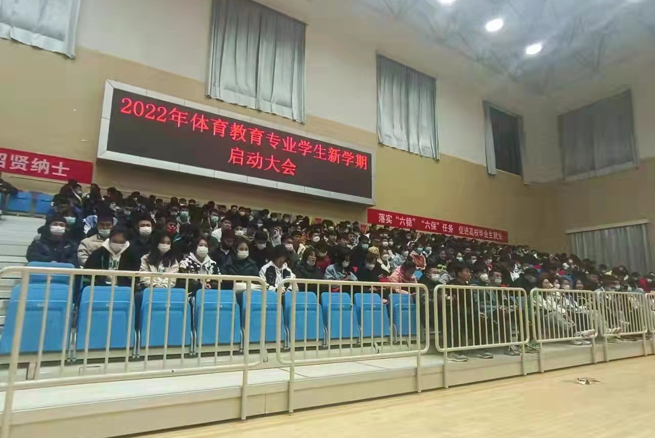 2022年2月28日晚上19:30,为了明确学习目标、强化学习动机,太阳成集团tyc151体育系在公司体育馆内举办了“2022年体育教育专业员工新学期启动大会”。参会人员有体育教育专业4个年级的在校员工,以及各班班主任和太阳成集团tyc151部分院系领导,共计400余人。